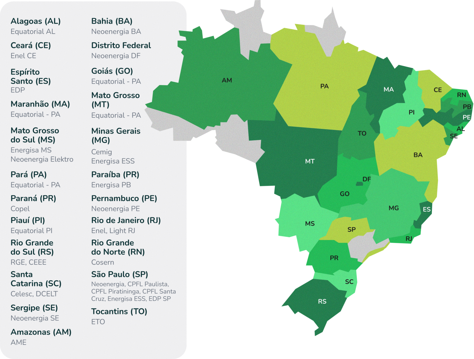 Atendemos mais de 20 estados do Brasil por meio da Geração Distribuída, com cobertura em mais de 50% do território nacional.